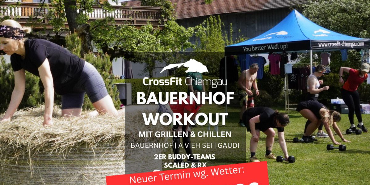 Euch erwartet ein Partner-WOD, das sich gewaschen hat: Wir mixen rustikale „Bauernhof-Power“ mit klassischen CrossFit-Elementen. Das Ganze findet vor einer Kulisse statt, die so kitschig schön ist, dass man fast vergessen könnte, wie sehr die Quads brennen: direkter Blick über den Chiemsee und die Chiemgauer Alpen!