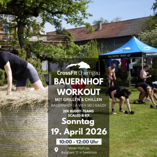 Servus Crossis! Seid ihr bereit, den inneren Öhi zu wecken? Unser legendäres Bauernhofworkout geht in die nächste Runde! Am Sonntag, den 19. April 2026, tauschen wir unsere Box gegen den idyllischen Moier-Hof Lex von Isabell und Roland (https://urlaubshof-lex.de). Euch erwartet ein Partner-WOD,...